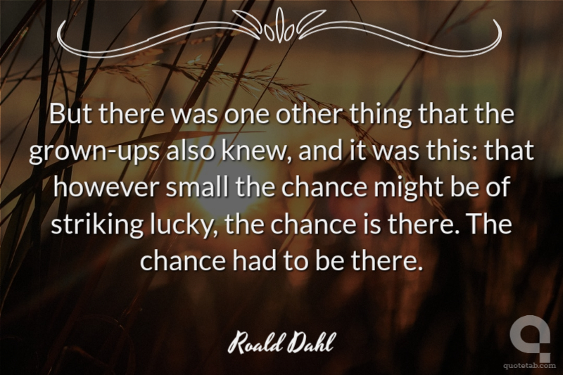 But there was one other thing that the grown-ups also knew, and it was this: that however small the chance might be of striking lucky, the chance is there. The chance had to be there.