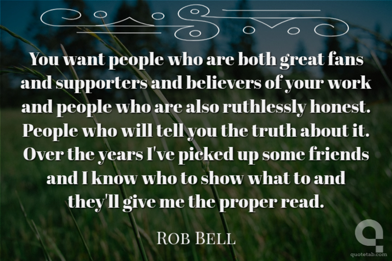 You want people who are both great fans and supporters and believers of your work and people who are also ruthlessly honest. People who will tell you the truth about it. Over the years I've picked up some friends and I know who to show what to and they'll give me the proper read.