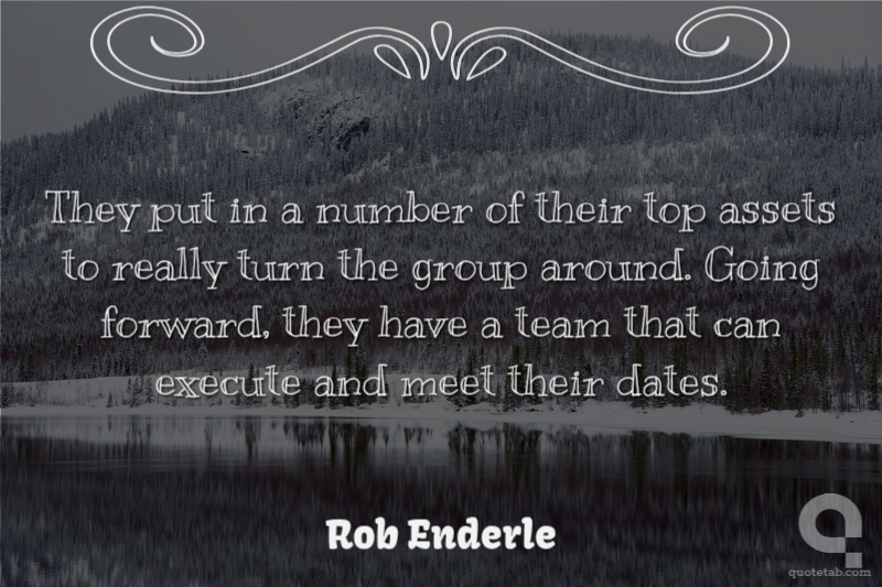 They put in a number of their top assets to really turn the group around. Going forward, they have a team that can execute and meet their dates.