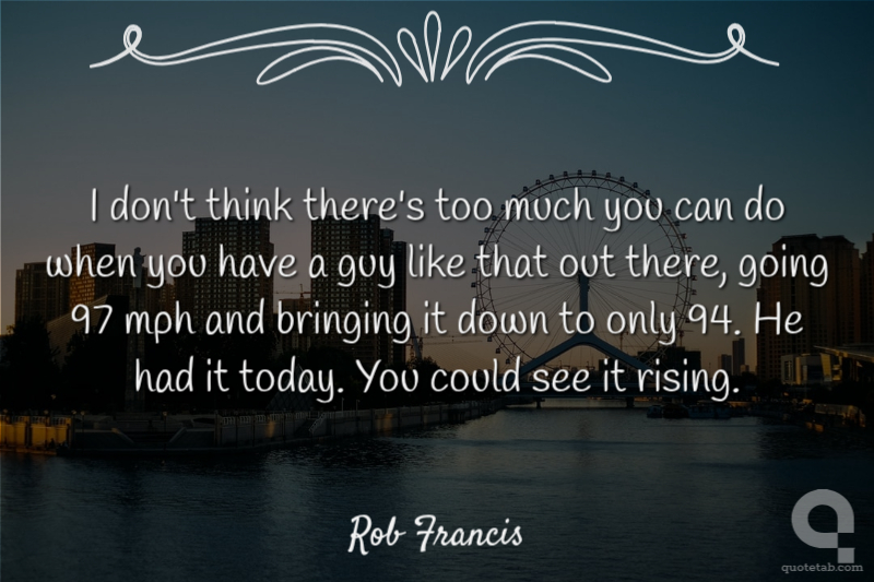 I don't think there's too much you can do when you have a guy like that out there, going 97 mph and bringing it down to only 94. He had it today. You could see it rising.