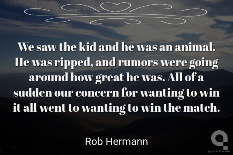 We saw the kid and he was an animal. He was ripped, and rumors were going around how great he was. All of a sudden our concern for wanting to win it all went to wanting to win the match.