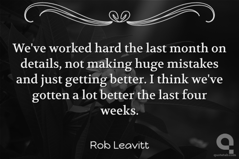 We've worked hard the last month on details, not making huge mistakes and just getting better. I think we've gotten a lot better the last four weeks.
