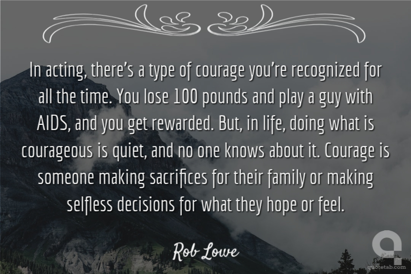 In acting, there's a type of courage you're recognized for all the time. You lose 100 pounds and play a guy with AIDS, and you get rewarded. But, in life, doing what is courageous is quiet, and no one knows about it. Courage is someone making sacrifices for their family or making selfless decisions for what they hope or feel.