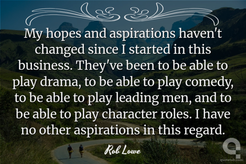 My hopes and aspirations haven't changed since I started in this business. They've been to be able to play drama, to be able to play comedy, to be able to play leading men, and to be able to play character roles. I have no other aspirations in this regard.