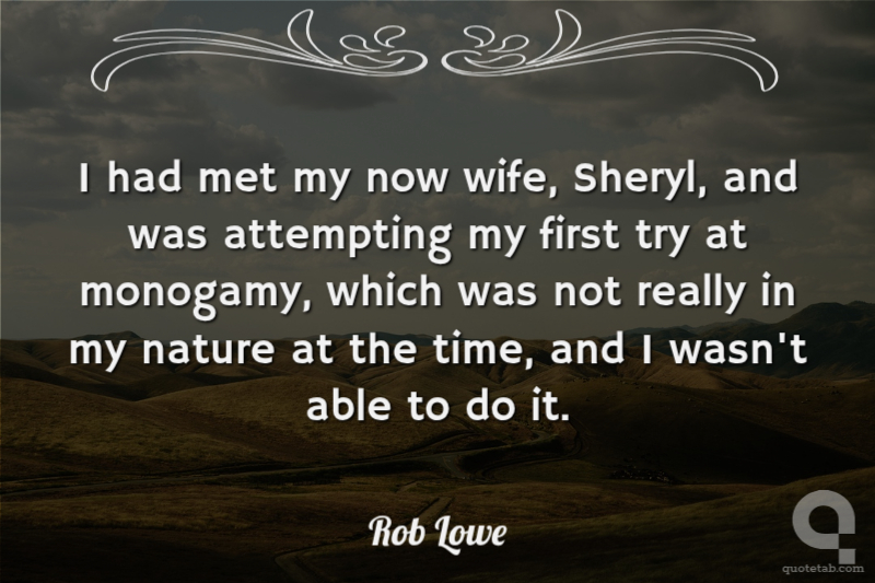 I had met my now wife, Sheryl, and was attempting my first try at monogamy, which was not really in my nature at the time, and I wasn't able to do it.