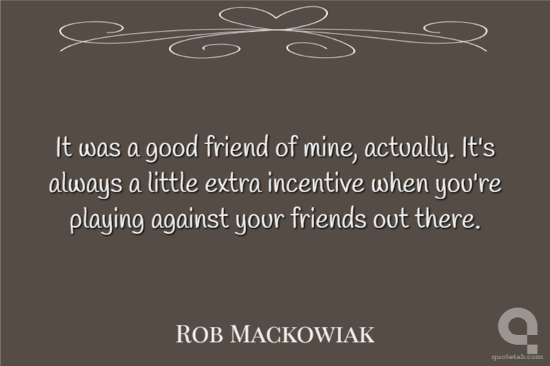It was a good friend of mine, actually. It's always a little extra incentive when you're playing against your friends out there.