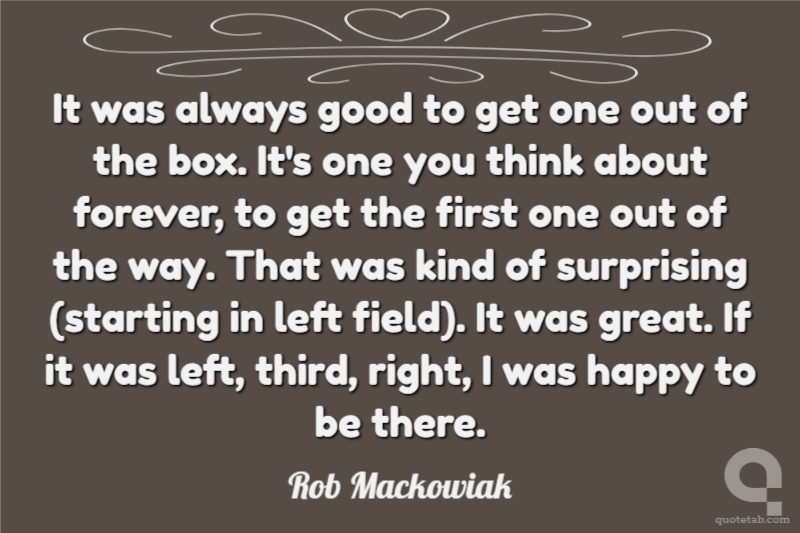 It was always good to get one out of the box. It's one you think about forever, to get the first one out of the way. That was kind of surprising (starting in left field). It was great. If it was left, third, right, I was happy to be there.