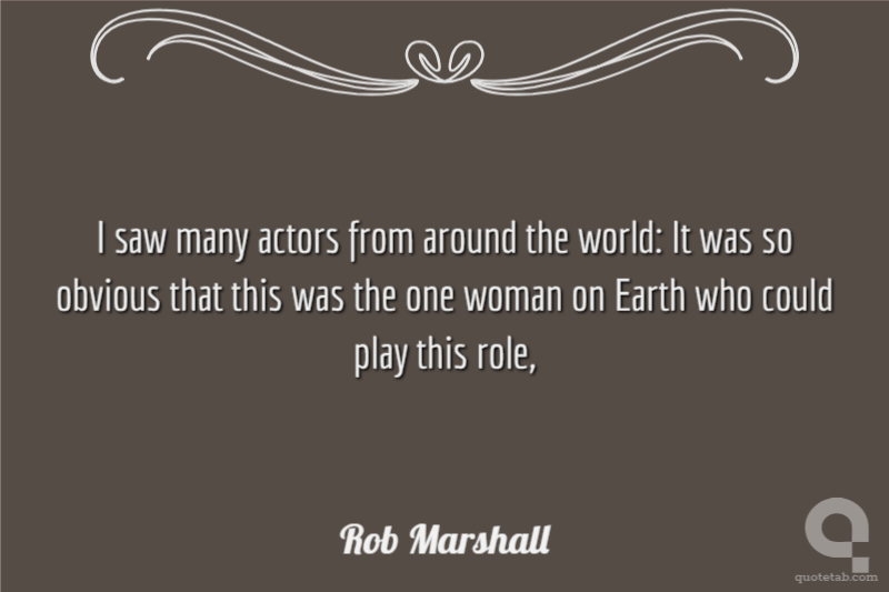 I saw many actors from around the world: It was so obvious that this was the one woman on Earth who could play this role,