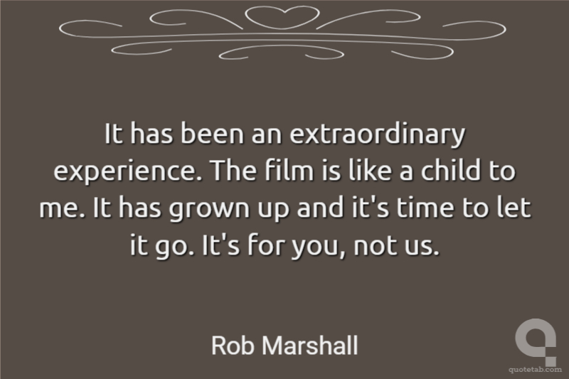 It has been an extraordinary experience. The film is like a child to me. It has grown up and it's time to let it go. It's for you, not us.