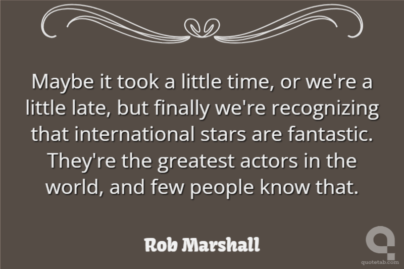 Maybe it took a little time, or we're a little late, but finally we're recognizing that international stars are fantastic. They're the greatest actors in the world, and few people know that.