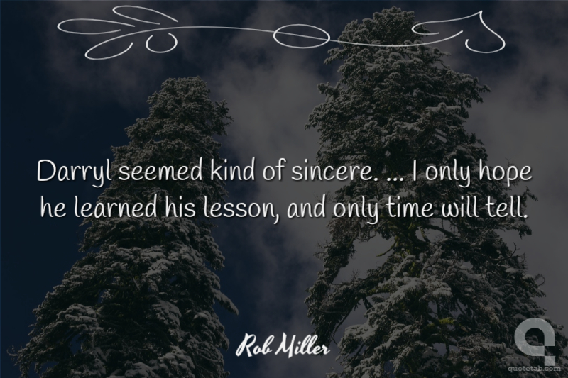 Darryl seemed kind of sincere. ... I only hope he learned his lesson, and only time will tell.