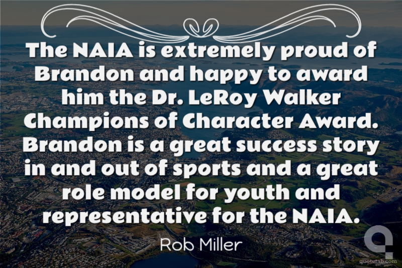 The NAIA is extremely proud of Brandon and happy to award him the Dr. LeRoy Walker Champions of Character Award. Brandon is a great success story in and out of sports and a great role model for youth and representative for the NAIA.
