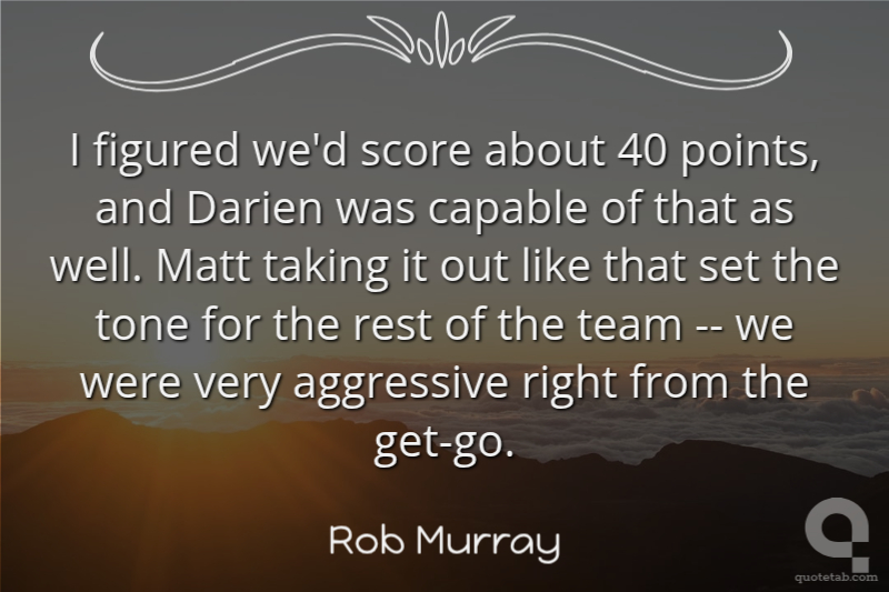 I figured we'd score about 40 points, and Darien was capable of that as well. Matt taking it out like that set the tone for the rest of the team -- we were very aggressive right from the get-go.