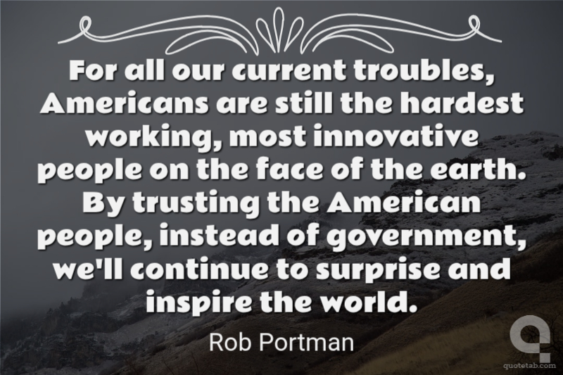 For all our current troubles, Americans are still the hardest working, most innovative people on the face of the earth. By trusting the American people, instead of government, we'll continue to surprise and inspire the world.