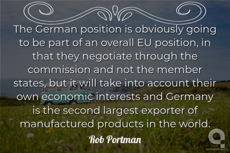 The German position is obviously going to be part of an overall EU position, in that they negotiate through the commission and not the member states, but it will take into account their own economic interests and Germany is the second largest exporter of manufactured products in the world.
