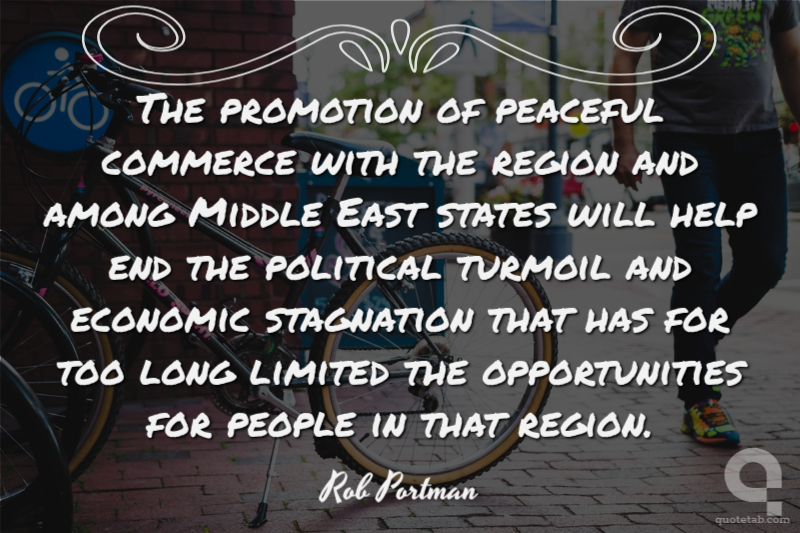 The promotion of peaceful commerce with the region and among Middle East states will help end the political turmoil and economic stagnation that has for too long limited the opportunities for people in that region.
