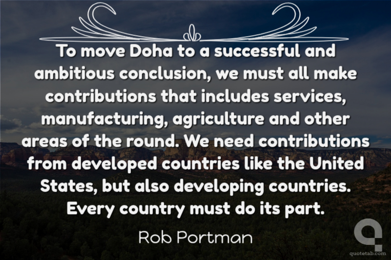 To move Doha to a successful and ambitious conclusion, we must all make contributions that includes services, manufacturing, agriculture and other areas of the round. We need contributions from developed countries like the United States, but also developing countries. Every country must do its part.