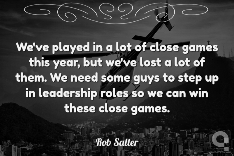 We've played in a lot of close games this year, but we've lost a lot of them. We need some guys to step up in leadership roles so we can win these close games.