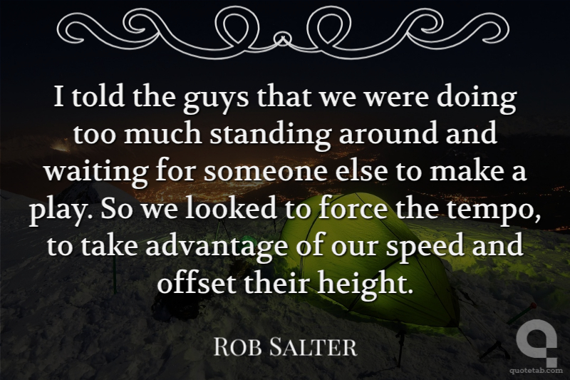 I told the guys that we were doing too much standing around and waiting for someone else to make a play. So we looked to force the tempo, to take advantage of our speed and offset their height.