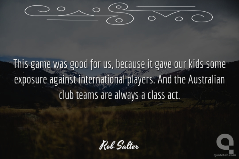 This game was good for us, because it gave our kids some exposure against international players. And the Australian club teams are always a class act.
