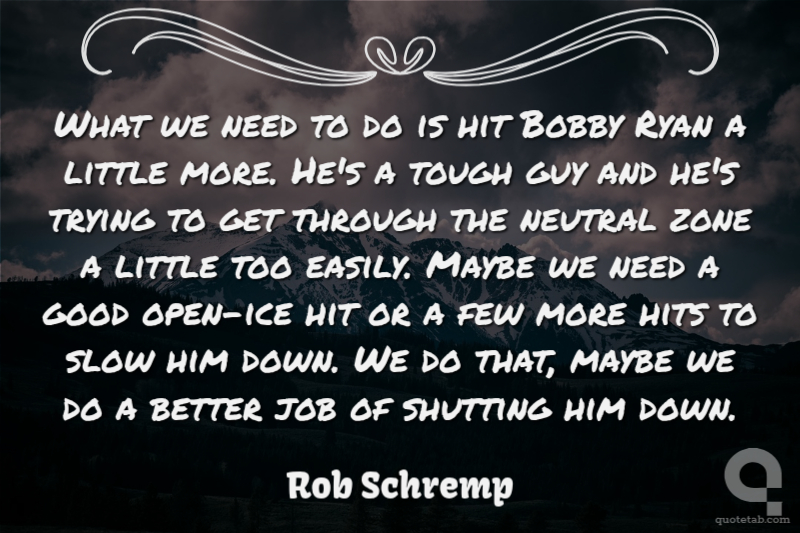 What we need to do is hit Bobby Ryan a little more. He's a tough guy and he's trying to get through the neutral zone a little too easily. Maybe we need a good open-ice hit or a few more hits to slow him down. We do that, maybe we do a better job of shutting him down.