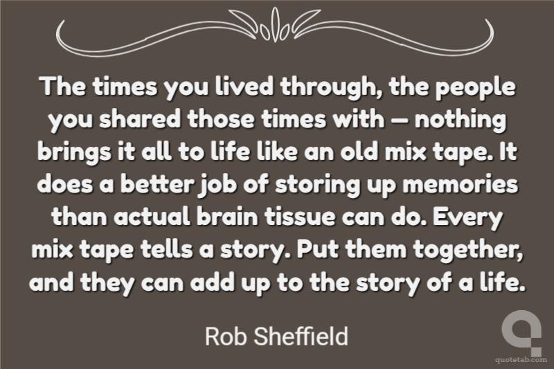 The times you lived through, the people you shared those times with — nothing brings it all to life like an old mix tape. It does a better job of storing up memories than actual brain tissue can do. Every mix tape tells a story. Put them together, and they can add up to the story of a life.