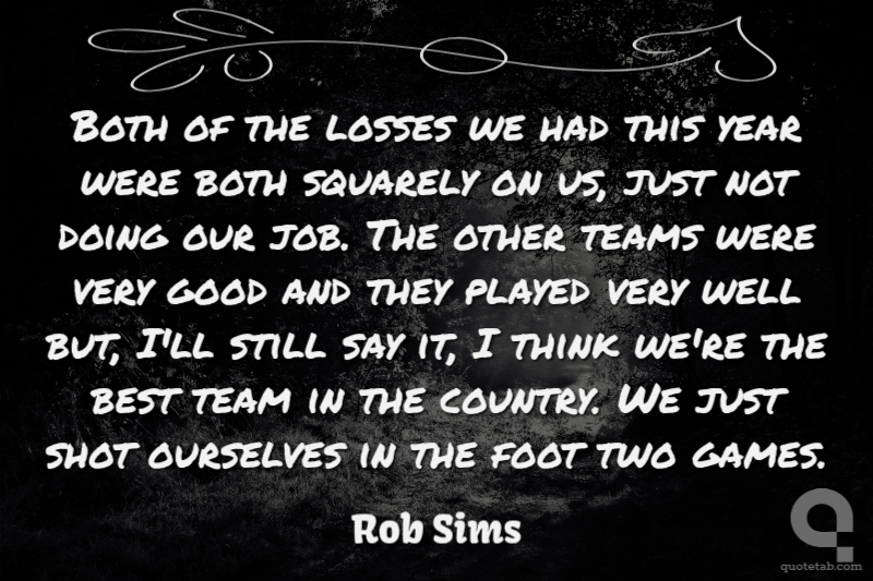Both of the losses we had this year were both squarely on us, just not doing our job. The other teams were very good and they played very well but, I'll still say it, I think we're the best team in the country. We just shot ourselves in the foot two games.