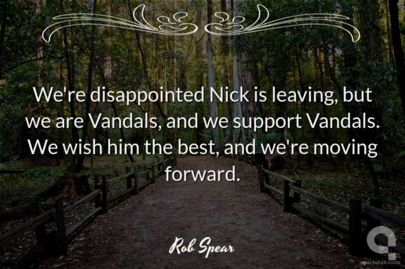 We're disappointed Nick is leaving, but we are Vandals, and we support Vandals. We wish him the best, and we're moving forward.