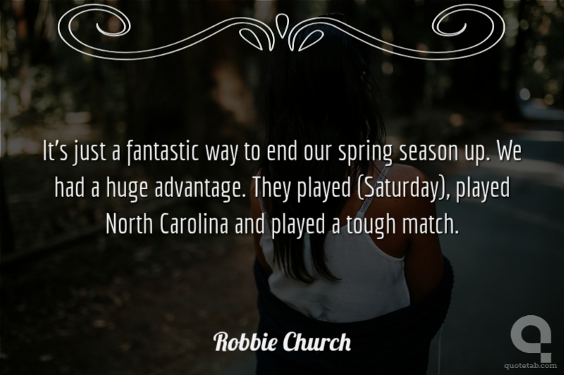 It's just a fantastic way to end our spring season up. We had a huge advantage. They played (Saturday), played North Carolina and played a tough match.