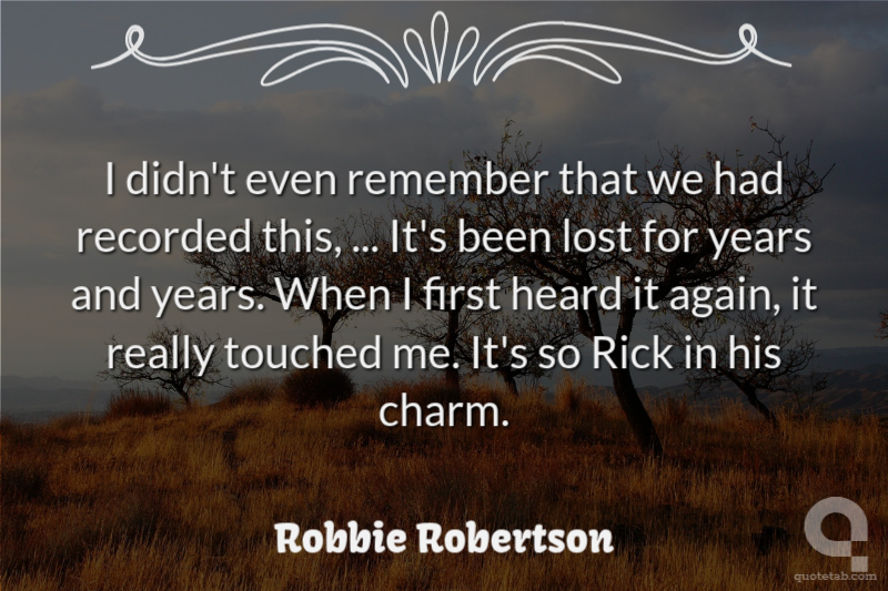 I didn't even remember that we had recorded this, ... It's been lost for years and years. When I first heard it again, it really touched me. It's so Rick in his charm.