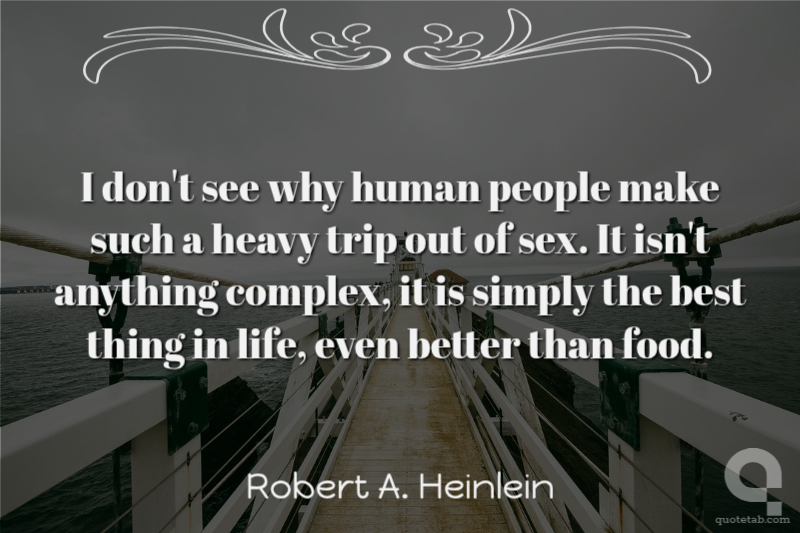 I don't see why human people make such a heavy trip out of sex. It isn't anything complex, it is simply the best thing in life, even better than food.