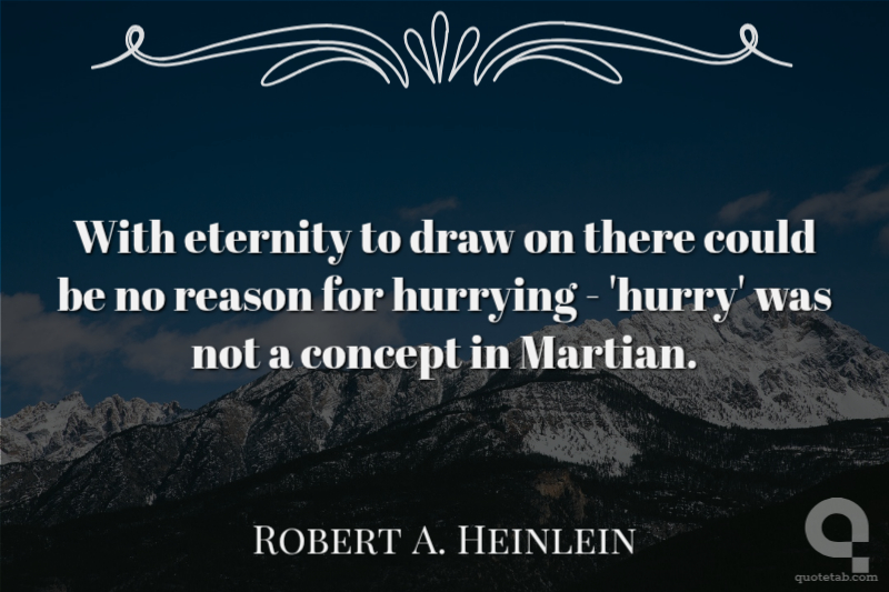 With eternity to draw on there could be no reason for hurrying - 'hurry' was not a concept in Martian.