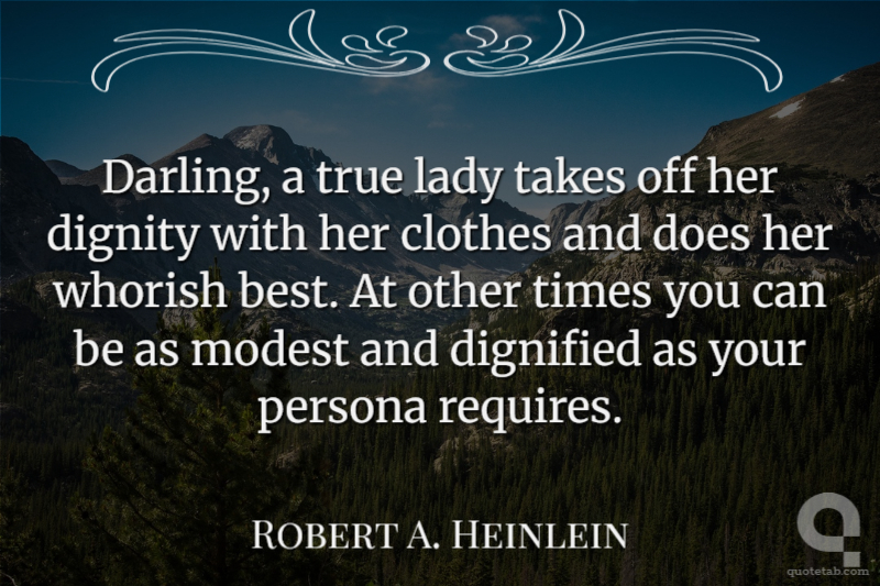 Darling, a true lady takes off her dignity with her clothes and does her whorish best. At other times you can be as modest and dignified as your persona requires.