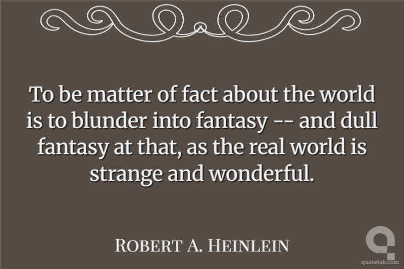 To be matter of fact about the world is to blunder into fantasy -- and dull fantasy at that, as the real world is strange and wonderful.