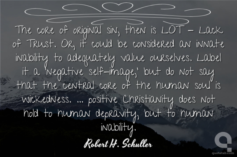 The core of original sin, then is LOT - Lack of Trust. Or, it could be considered an innate inability to adequately value ourselves. Label it a 'negative self-image,' but do not say that the central core of the human soul is wickedness. ... positive Christianity does not hold to human depravity, but to human inability.