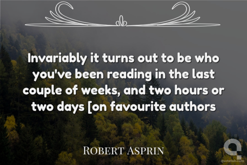 Invariably it turns out to be who you've been reading in the last couple of weeks, and two hours or two days [on favourite authors