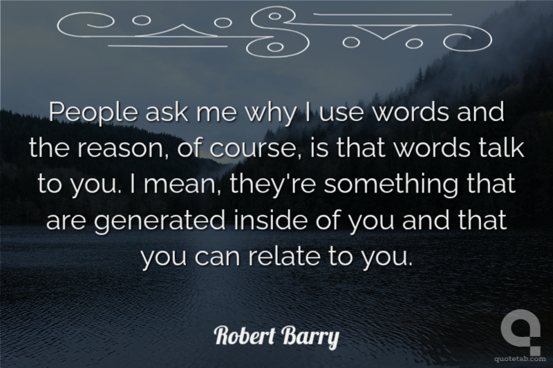 People ask me why I use words and the reason, of course, is that words talk to you. I mean, they're something that are generated inside of you and that you can relate to you.