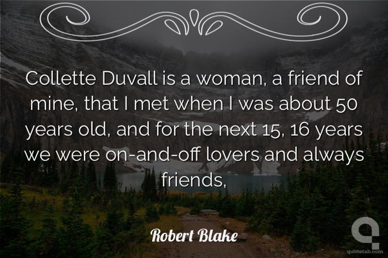 Collette Duvall is a woman, a friend of mine, that I met when I was about 50 years old, and for the next 15, 16 years we were on-and-off lovers and always friends,