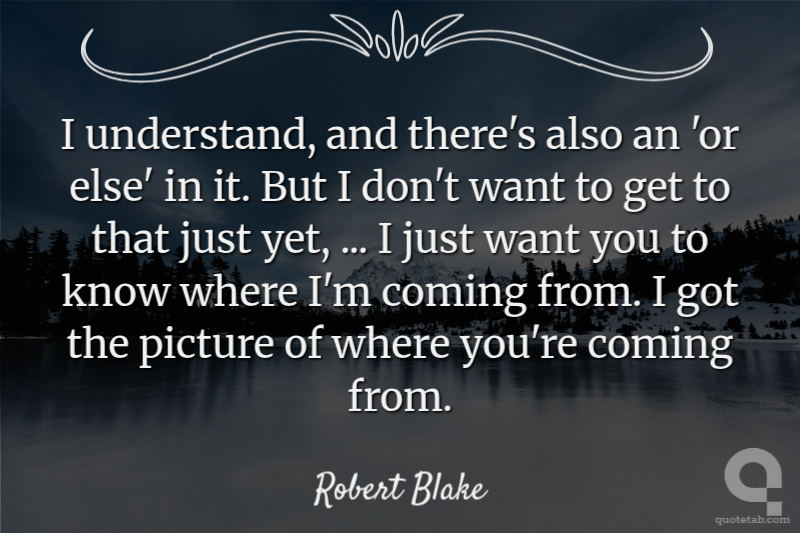 I understand, and there's also an 'or else' in it. But I don't want to get to that just yet, ... I just want you to know where I'm coming from. I got the picture of where you're coming from.