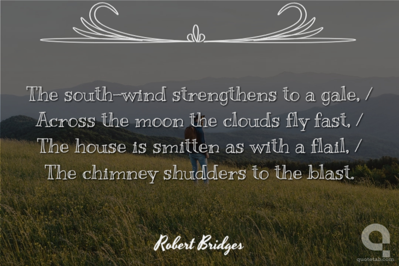 The south-wind strengthens to a gale, / Across the moon the clouds fly fast, / The house is smitten as with a flail, / The chimney shudders to the blast.