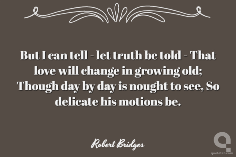 But I can tell - let truth be told - That love will change in growing old; Though day by day is nought to see, So delicate his motions be.