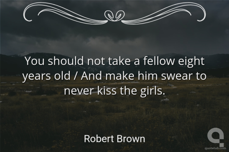 You should not take a fellow eight years old / And make him swear to never kiss the girls.