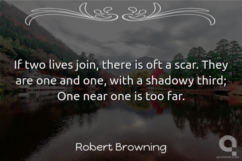 If two lives join, there is oft a scar. They are one and one, with a shadowy third; One near one is too far.