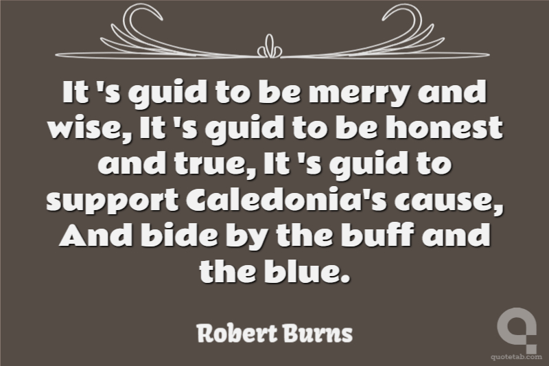It 's guid to be merry and wise, It 's guid to be honest and true, It 's guid to support Caledonia's cause, And bide by the buff and the blue.