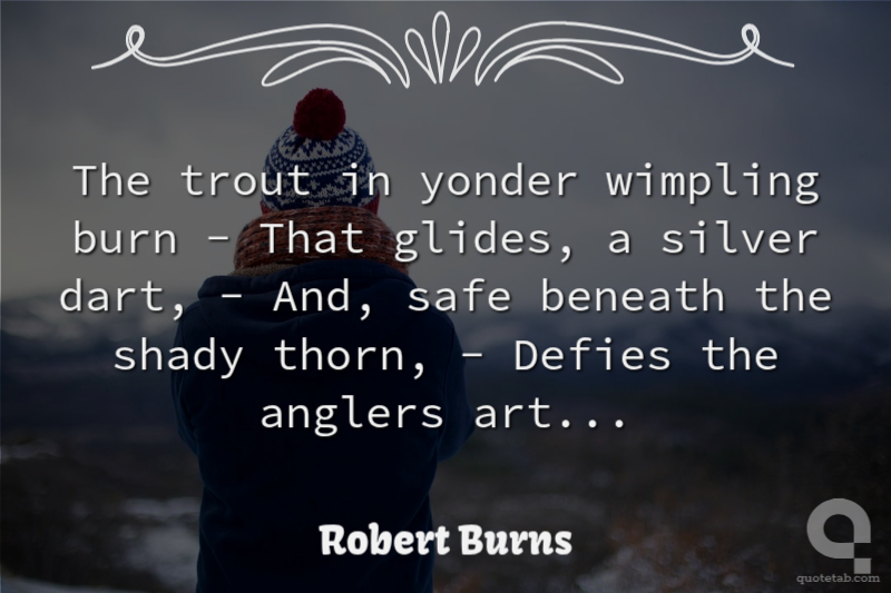 The trout in yonder wimpling burn - That glides, a silver dart, - And, safe beneath the shady thorn, - Defies the anglers art...