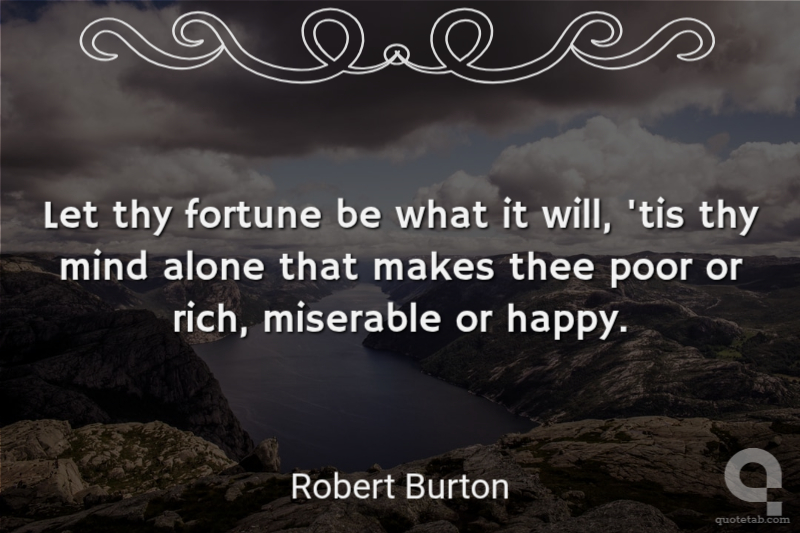 Let thy fortune be what it will, 'tis thy mind alone that makes thee poor or rich, miserable or happy.