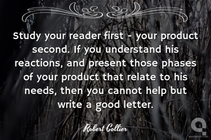Study your reader first - your product second. If you understand his reactions, and present those phases of your product that relate to his needs, then you cannot help but write a good letter.