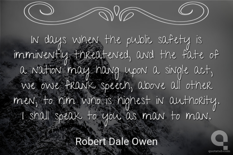 In days when the public safety is imminently threatened, and the fate of a nation may hang upon a single act, we owe frank speech, above all other men, to him who is highest in authority. I shall speak to you as man to man.