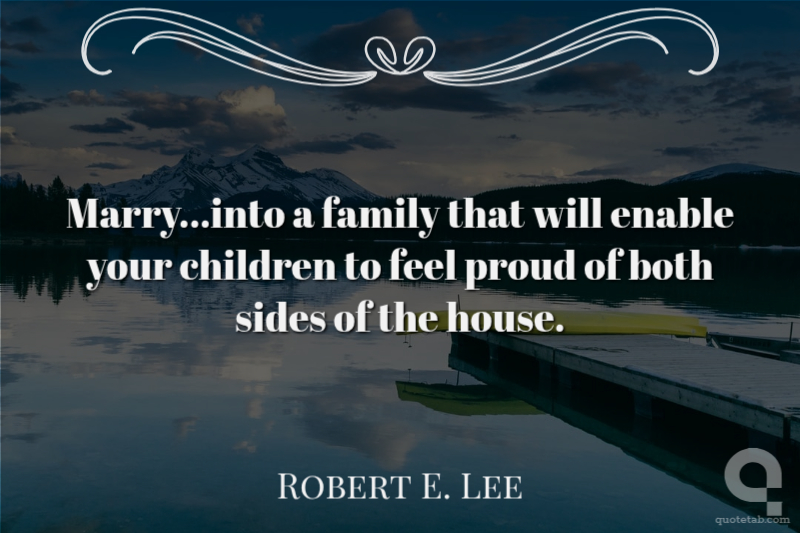 Marry...into a family that will enable your children to feel proud of both sides of the house.