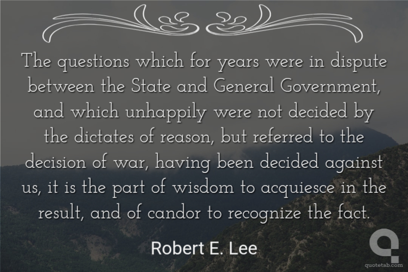 The questions which for years were in dispute between the State and General Government, and which unhappily were not decided by the dictates of reason, but referred to the decision of war, having been decided against us, it is the part of wisdom to acquiesce in the result, and of candor to recognize the fact.